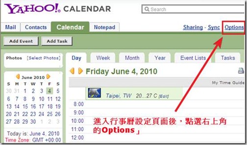 步驟四:進入 Yahoo 信箱的行事曆設定畫面